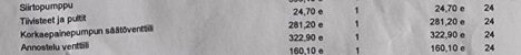 KORKEAPAINEPUMPUN SÄÄTÖVENTTIILI, vaihdettu kuitin perusteella