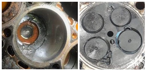 Autoon oli tehty alunperin korjauksia reilipaineeseen liittyen ja tämän jälkeen auto oli hajonnut 10km ajon jälkeen ja kuvien perusteella 5mm pultti oli päätynyt männän päälle.