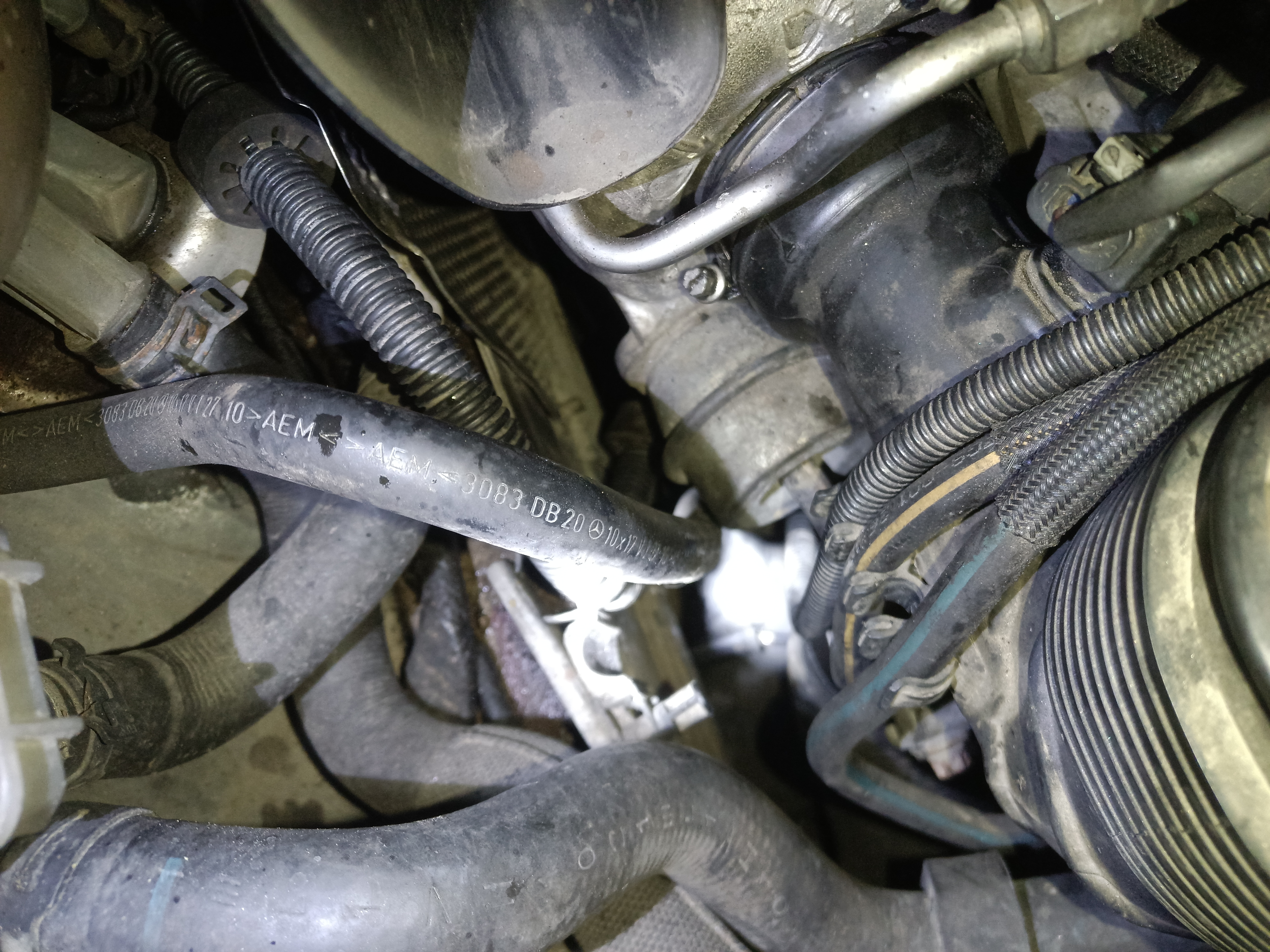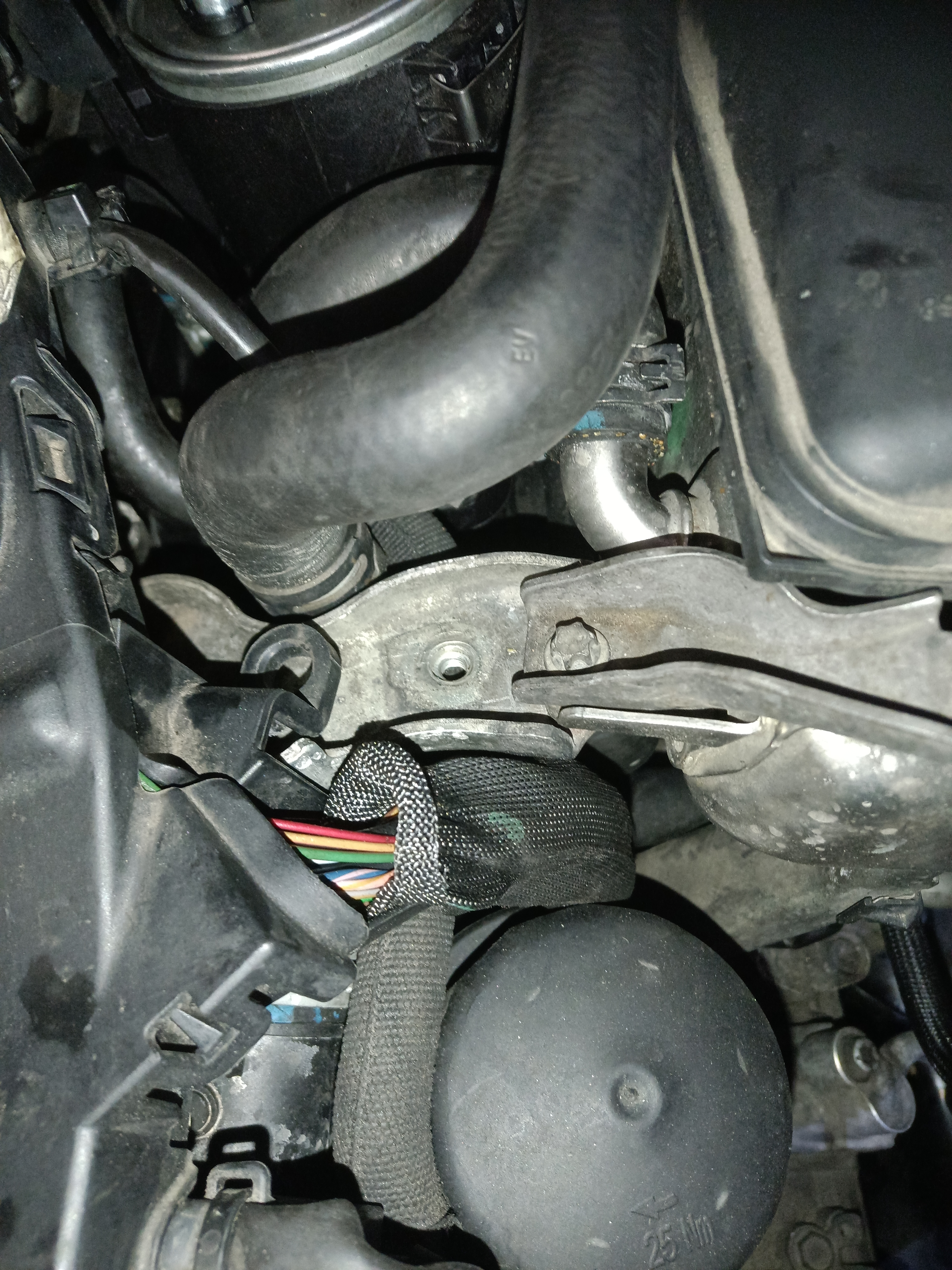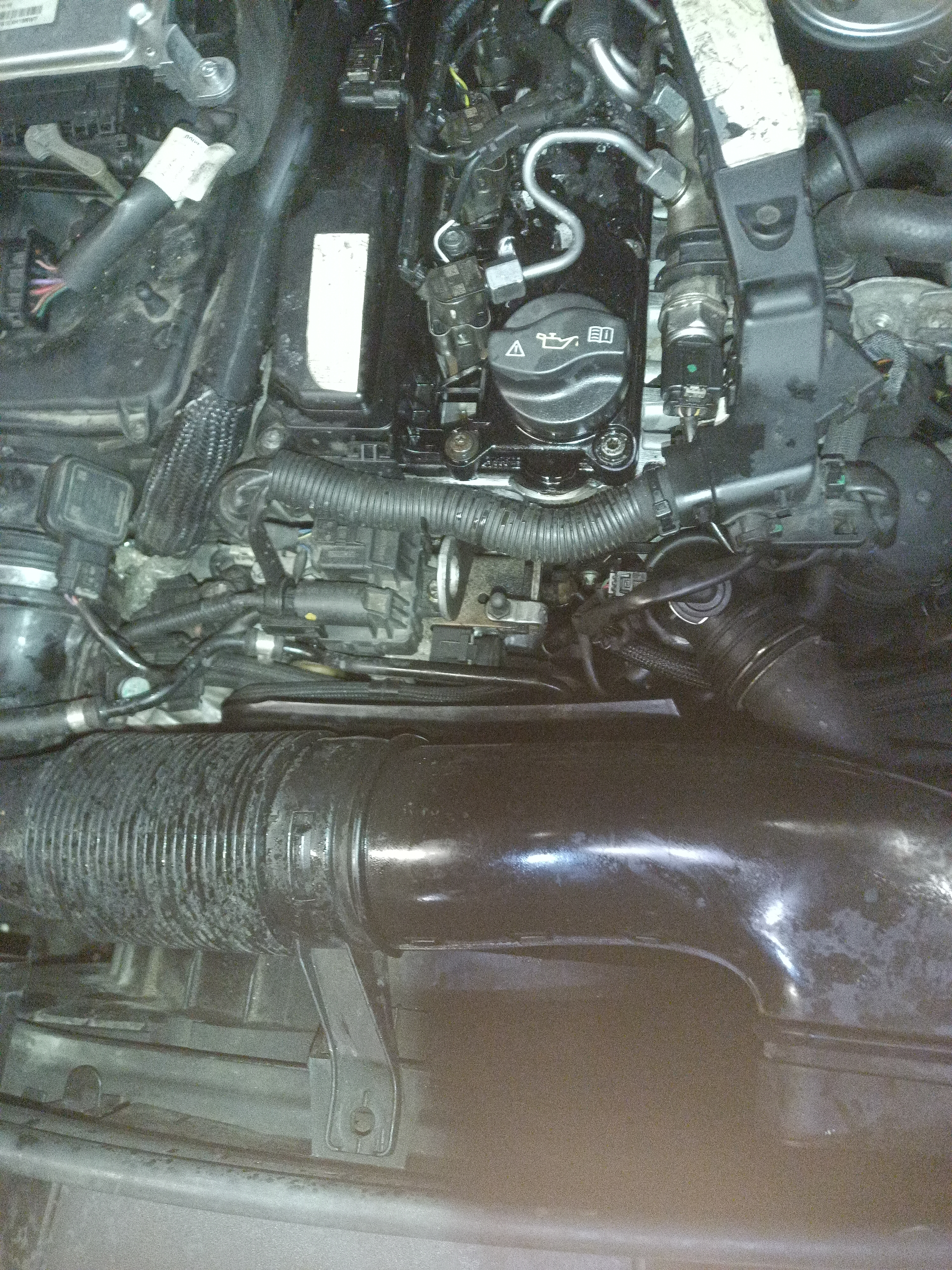 EGR:n jäähdytimen pitää purkaa pois, että pääsee edes irroitamaan imusarjan osia, moottoritila on todella ahdas!
