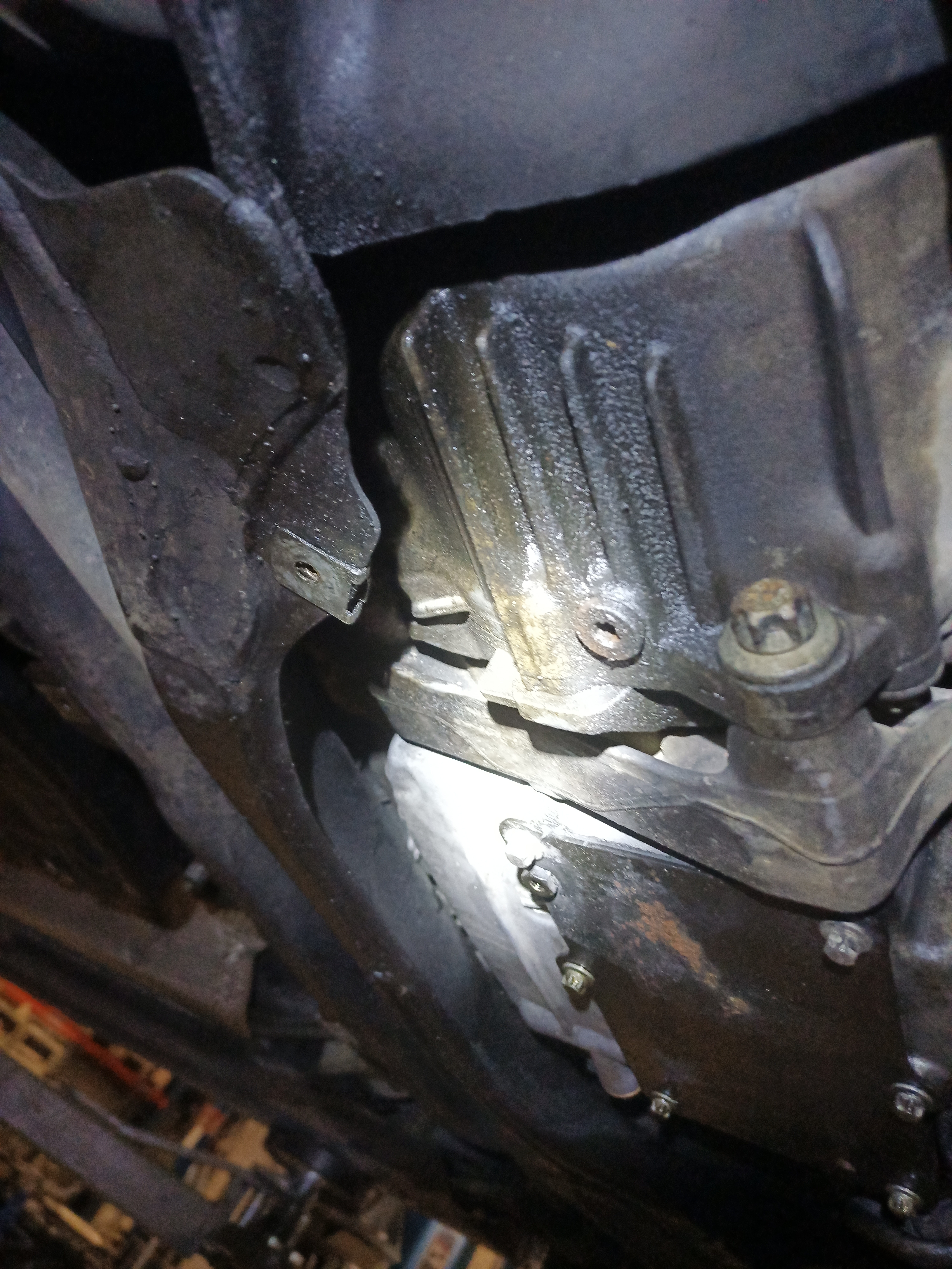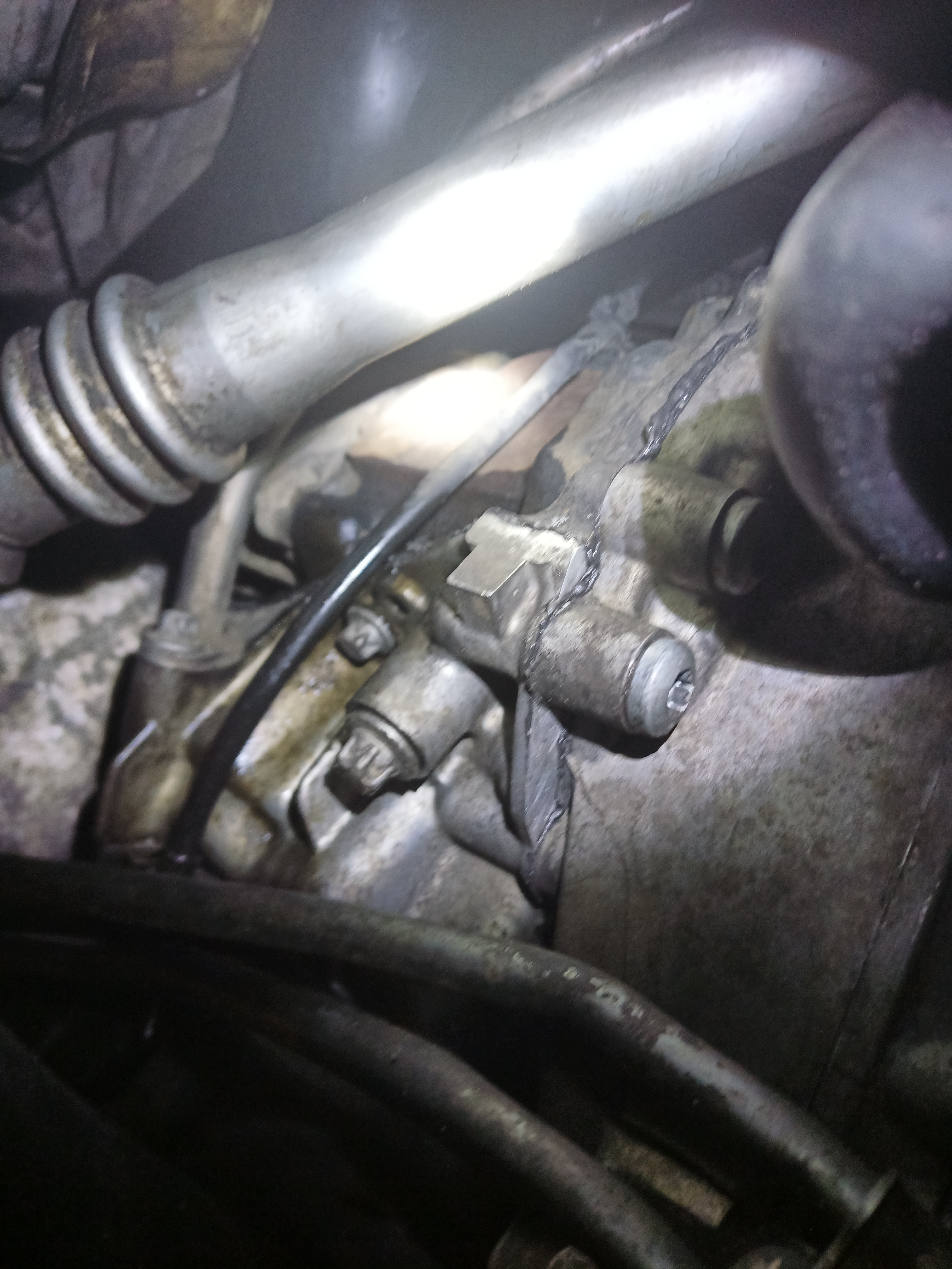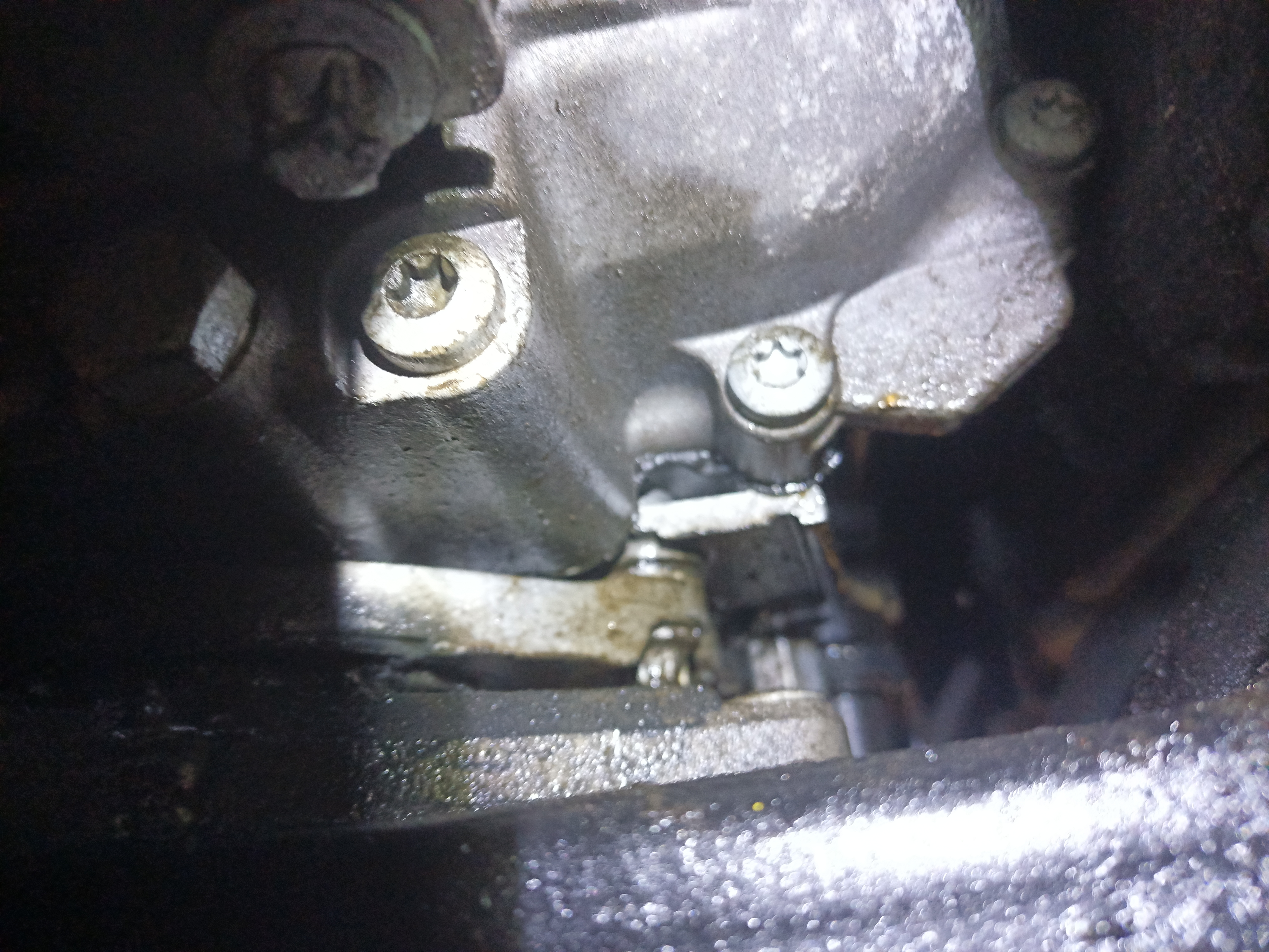21. Vaihteiston takimmainen sauma öljyssä, tuoreen näköinen tiivisteliima