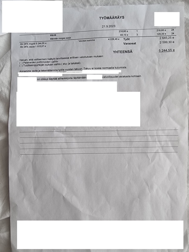 Eli työn osuus on helposti alkaen 3000 € + ongelmat ja lisätyöt.