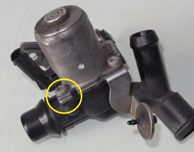Sähköinen vesipumppu, jossa samanlainen kiinnityspultti kuin männän päällä kuvissa on.
