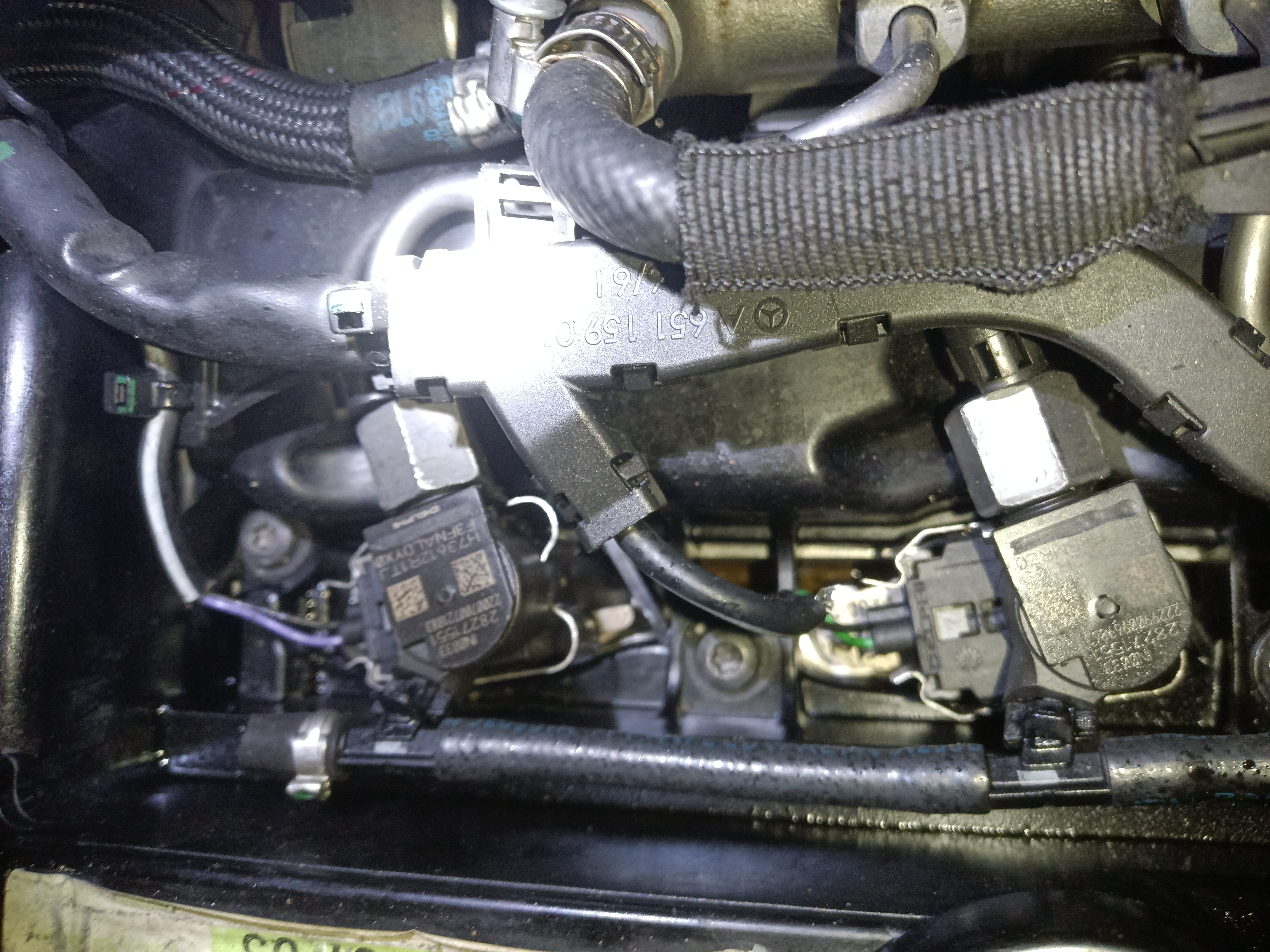 Moottorin käyminen ei tunnu oikelta. Käyntiääni on lämpimänäkin kuin kylmän Dieselmoottorin käynti, erittäin terävä, joka antaa epäilyksen, että suuttimet tms eivät toimi oikein. Samoin moottorissa on värinöitä varsinkin 800-1000 rpm ja reipas 2000rpm kohdilla. Käyntiä verrattiin toiseen samanlaiseen MB GLK Mesruun, joka oli enemmän ajettu (yli 200tkm) ja siinä oli sama perusmoottori 651.912. Käyntiäänen terävyys ja värinät olivat selviä ilman verrokkiautoa, mutta tämä antoi vielä vahvistuksen asiasta.